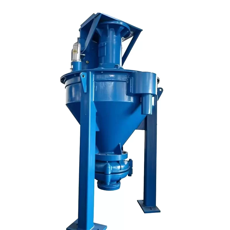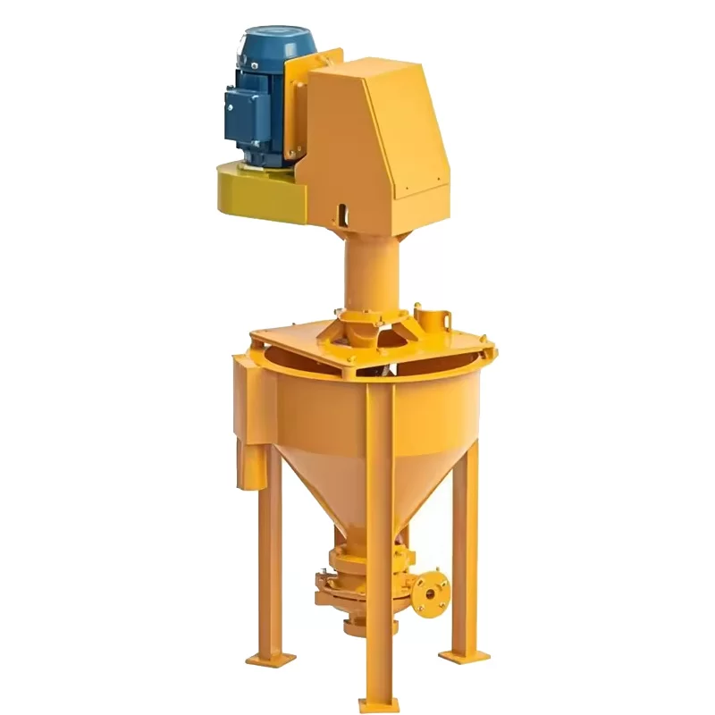 The Vertical froth pump is a double pump shell structure, and the flow parts are made of hard nickel, high chromium or rubber, and this pump do not use shaft seals, semi-open impeller designs with vanes on both sides or top side are suitable for pumping froth. The hopper feeding box is a steel plate structure, which can be lined according to the different conveying media, and the pump outlet position can be changed at 45 degree intervals.